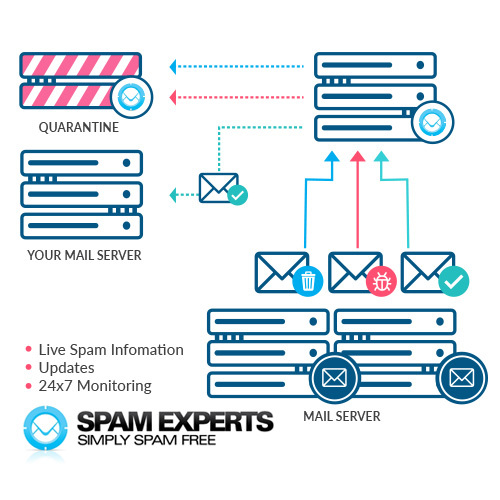All incoming email is not sent directly to your server. Instead, it is first routed through the SpamExperts cloud-based filter. This is the core of our “Simply Spam Free” promise.